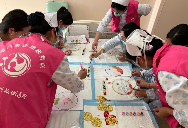 为共同庆祝2022新年来临,科技城医院“康乃馨”志愿服务队、妇产科青年文明号集思广益,推出“‘疫’心有你·孕味十足”DIY课堂,通过手工制作来丰富待产孕妇住院生活,缓解紧张情绪,加强了医患沟通互动。