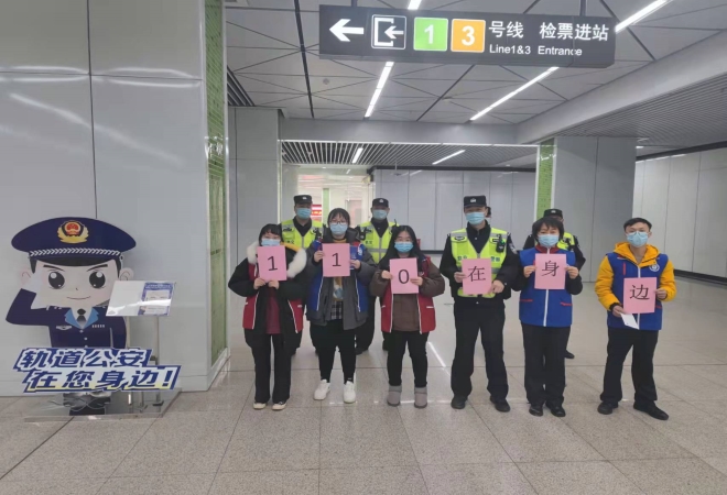 为庆祝第二个“中国人民警察节”,1月10日上午,苏州轨道蓝盾志愿者来到狮子山地铁站开展“守护轨道平安 节前预防诈骗”宣传活动