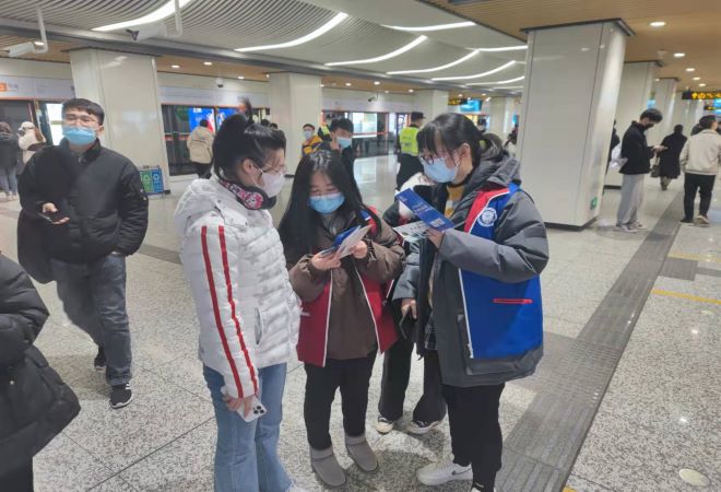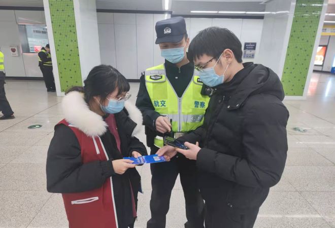 苏州轨道蓝盾志愿者开展“守护轨道平安 节前预防诈骗”宣传活动