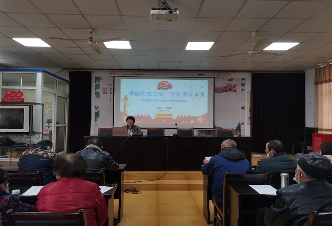 1月19日尚湖镇青年讲师团成员、王庄中心小学教科室副主任金雪敏老师走进福寿村,为全体党员进行学习贯彻党的十九届六中全会精神宣讲。1月15日和20日,尚湖镇青年讲师团成员、镇团委副书记赵思雨,走进冶塘社区、新巷村开展题为“以传承之名 赴时代之约”的学习贯彻党的十九届六中全会精神宣讲。