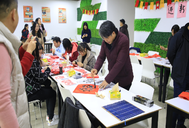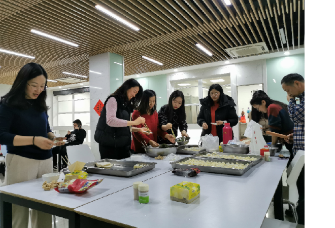 活动现场,大家捋起袖子一起包饺子、馄饨,爱好书法的员工铺开红纸挥毫泼墨写春联,更有剪窗花的能手……大家都沉浸在热热闹闹迎新年的氛围中,脸上洋溢着喜庆幸福的笑容。