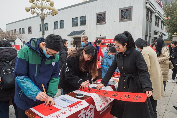 翰墨飘香迎新年,春联入户送祝福。