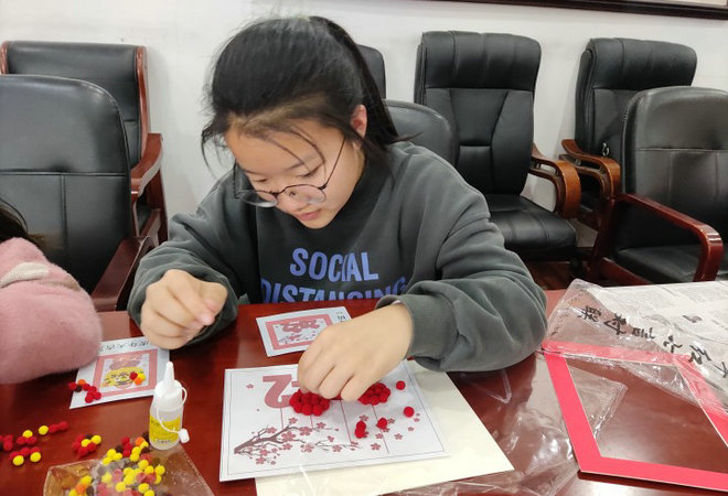 苏州工业园区:娄葑街道团工委开展“巧手贴绒花 快乐迎新春”主题活动