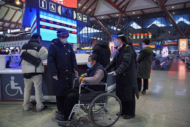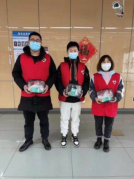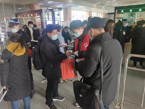 2月7日,春节后的第一个工作日,苏州市民乘客、一线产业从业者陆续返岗,苏城也迎来了第一场大雪。根据苏州市、区疫情防控指挥部的最新指示,运营保障突击队自7日起至15日,每天安排28名青年志愿者分赴苏州火车站、高铁苏州北站、狮山路站等客流集中站点,协助车站核实返苏乘客的身份信息、行动轨迹、健康状况,帮助车站工作人员做好客流引导,解答乘客的乘车咨询。为保障雨雪天气安全出行,志愿者们在车站出入口铺设防滑草垫,撒上了融雪剂。