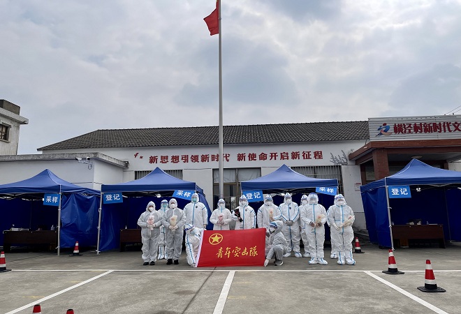 2022年2月月15日以来,按照区疫情防控指挥部统一部署,苏州市开展全员核酸检测工作,时间紧、任务重,在这紧要关头,横泾村青年志愿者主动请缨,积极靠前,投身于全员核酸检测的一线。