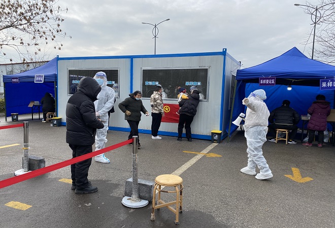 他们穿上防护衣带上防护镜,顶着月色、迎着寒风,投入到区域核酸检测采样现场中。青年志愿者们有的负责登记、测温,有的负责现场秩序维护,提醒居民戴好口罩、保持安全距离,有的负责引导居民至采样点。他们奔走在寒气弥漫的冬日里,个个精气神十足。