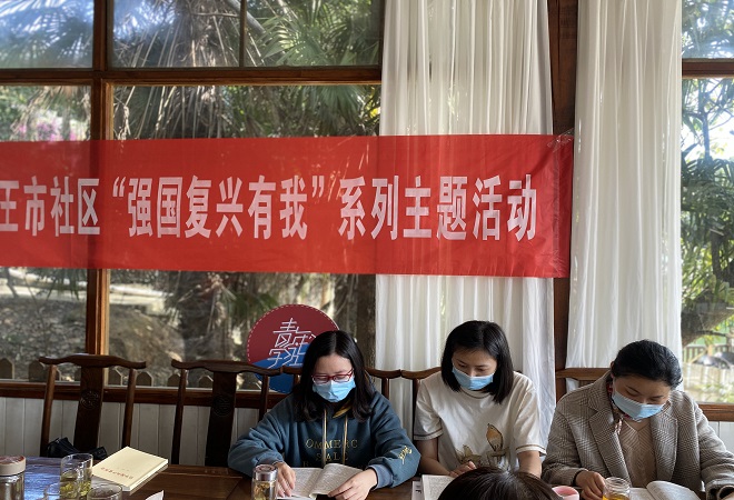 座谈会中,社区团支部书记王双沂带领女青年团员们一起学习党史书籍、学习十九届六中全会精神,引导青年团员们知史爱党、知史爱国,感悟党带领人民不懈奋斗、开拓进取的宏伟征程,在党史学习中践行青春理想,深入思考共青团员的职责和使命,进一步增强党性修养、坚定理想信念。