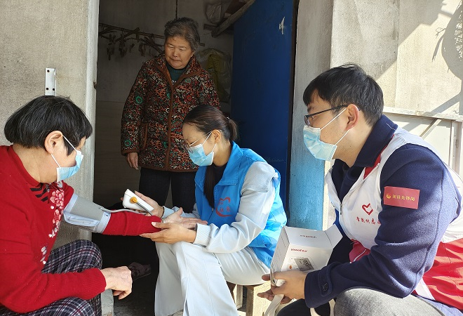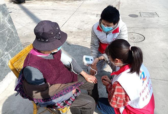 3月5日上午,常昆村团总支组织团员青年,组成志愿者队伍,先在村部进行集中培训,由义工为各位团员讲解血压计的使用方法,随后分组进入村庄,走入老人家中,为他们量血压、陪他们聊天,提醒他们注意好身体健康。