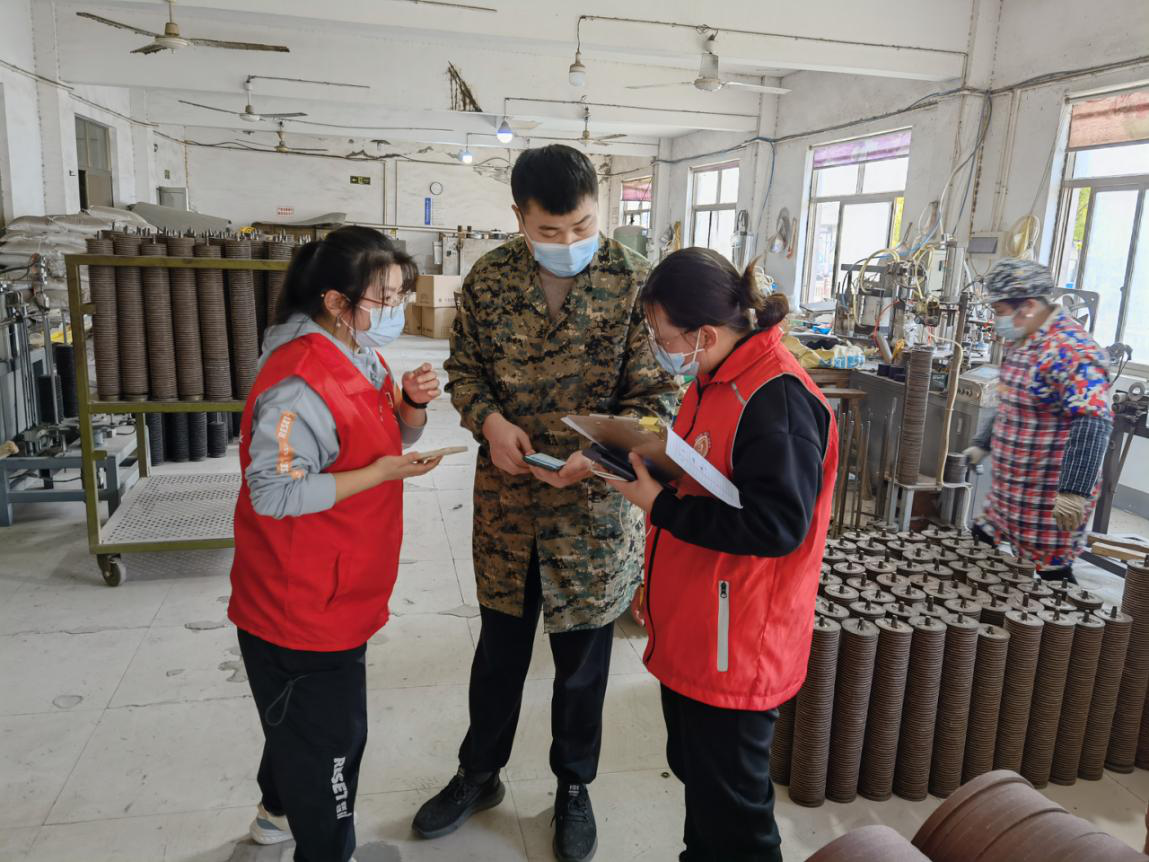 青年志愿者、村民组长召开紧急防疫短会,为提高排摸效率分成几个小组,分片逐户摸清相关人员。“您家有亲人住在上海或是每天沪太通勤的吗?您家最近有人去过上海吗……”“阿公阿婆,现在疫情还是比较严峻的,口罩要戴好,没事少出门、少扎堆……”一道道穿梭在乡间地头的红色身影,成为凤中村亮丽的风景线。