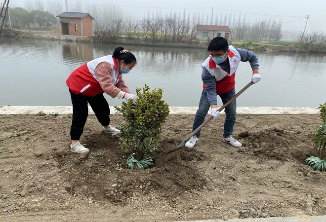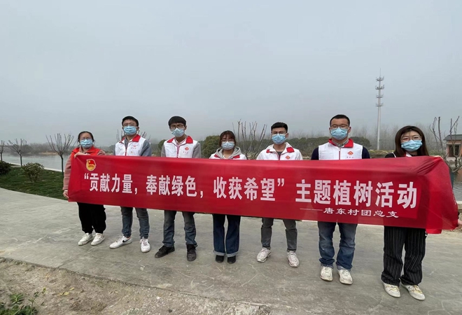 3月12日上午,在做好疫情防控的同时,沙家浜镇唐东村团总支开展“贡献力量,奉献绿色,收获希望”主题植树活动。