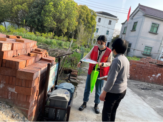 正确处理口罩、消毒等防疫期间产生的生活垃圾,是培养良好的生活习惯、切断病原体二次传播的重要环节。志愿者们向村民发放垃圾分类宣传小册子,为村民耐心讲解垃圾分类的政策与益处;重点讲解对使用过的防疫用品以及快递包装如何进行分类投放、防止二次污染。他们还向村民发放了口罩,倡导村民时刻保持防疫意识,坚持戴口罩、测体温、少扎堆、不聚集等防疫措施。