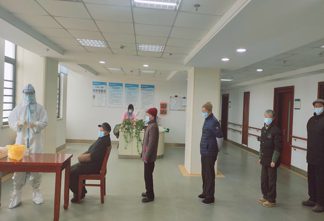2月以来,社会福利院进行了全封闭式管理,诊所的青年医务工作者们主动放弃了与家人团聚的时光,拖着行李住进了院内。除了日常的医护工作外,他们穿梭在各个护理区之间,每两天就要为院内七百多名职工和老人进行核酸检测采样。面对如此频繁的核酸检测,老人多有埋怨,甚至不配合,但这些困难阻挡不了他们的工作热情,温暖的笑脸、温心的话语、温柔的动作安抚着老人们的心,在一次又一次的努力后,这群可爱的“大白”们渐渐地被老人们接受了。