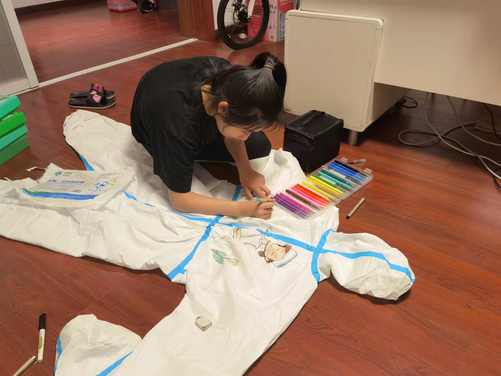 青春之力,绘希望蓝图。协仁村的儿女们受父母影响,通过在防护服上绘画来表达自己的感谢之情,李沐萱在防护上画上了南丁格尔并说道:“你们都是南丁格尔,是中国的提灯女神。”来协仁村支援的护士看到成品后都很开心,好像一早的疲惫被一扫而空,也好像自己的少女心再次填的满满当当。