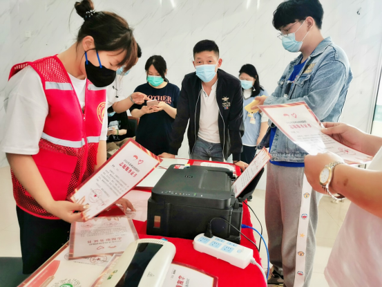 该项活动于5月4日正式发布,每周日在盛泽镇核酸采集方舱(城中)新时代文明实践点,现场由值班青年志愿者为每一位参与防疫志愿服务的爱心人士免费打印“2022年苏州市疫情防控志愿者服务证书”一次。参与防疫志愿服务的志愿者们,在“志愿苏州”上自行下载证书电子档,然后在方舱打印、塑封。