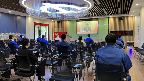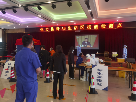 恒力集团团委在核酸检测点的大屏幕上进行直播,来排队做核酸的员工在排队或者做志愿服务的同时,接受了思想的洗礼;村社区的青年团员们在贴试管码、捆棉签的同时也会不经意转过头,看一眼手机上习主席的亲切面容;核酸现场维持秩序的青年,趁休息的间隙打开手机直播;在进行核酸采集的青年,索性把手机放在桌前,边登记边收看,听一听主席对青年们的美好期望……
