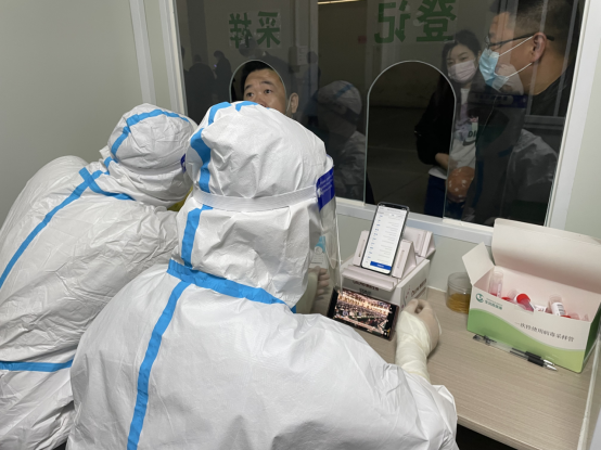 5月10日上午,盛泽镇开展全员核酸检测,广大团员青年奋斗在抗疫第一线的同时,仍然发扬“越是艰难越向前”的精神,通过各种方式聆听习近平总书记的“青春寄语”。