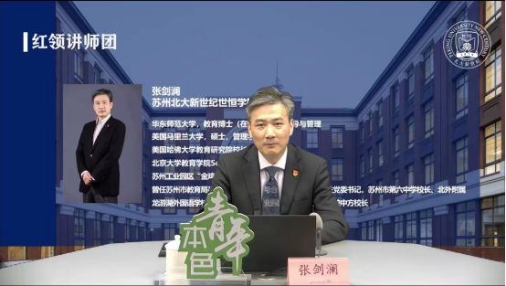 5月18日,由吴江开发区团工委主办的本色青年青春微课堂特别邀请到苏州市吴江区世恒学校党支部书记、总校长、红领讲师张剑澜为大家分享课程《当下学生发展观的浅析——从无中生有到边界突破》。