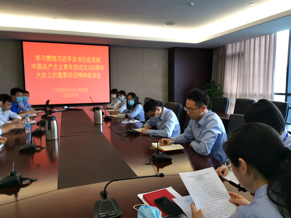 5月18日,江苏有线苏州分公司团委召开团干部座谈会,深入学习贯彻习近平总书记在庆祝中国共产主义青年团成立100周年大会上的重要讲话精神,传达落实省委、市委召开的学习贯彻习近平总书记重要讲话精神座谈会要求,还学习了姜龙董事长对公司团员青年的寄语,团结带领团员青年坚定不移听党话、跟党走,牢记习近平总书记的嘱托,以更加昂扬的姿态奋进新征程、建功新时代,奋力谱写当代苏州的青春之歌。