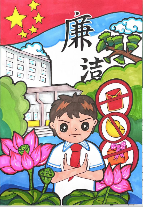 “出淤泥而不染,濯清涟而不妖”“守住廉洁门”“立缴拒礼”……学生们用手中的画笔描绘出廉洁自律的诗句、漫画、故事等,生动形象地让大家感受“以廉为荣、以贪为耻”的敬廉崇洁文化教育。