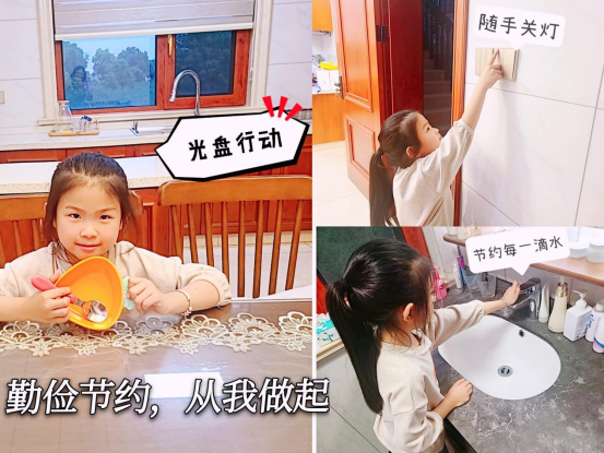 低年级学生在父母的帮助下通过镜头展示家庭日常生活中勤俭节约的行为习惯,向全校倡导节俭拒奢的生活方式,营造以廉齐家,弘扬好家风的浓厚氛围。