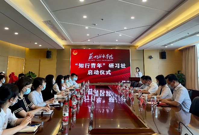 为更好助力学校高质量发展,服务地方建设,提高共青团组织面对新形势、新情况和研讨新问题的整体水平,锻造一支绝对忠诚、筋骨强健、敢战能胜的青春铁军,6月9日下午,苏州城市学院团委(筹)在学校综合楼大会议室举行了苏州城市学院“知行青年”研习社启动仪式暨第一次集中授课。苏州城市学院党委书记芮国强,苏州团市委副书记蒋妍,苏州城市学院党委常委、副校长毛小勇,党委学生工作部(处)卞海勇出席仪式,苏州城市学院“知行青年”研习社全体成员、党委学生工作部(处)全体工作人员和辅导员参加活动。仪式由苏州城市学院团委筹备组负责人崔苏妍主持。