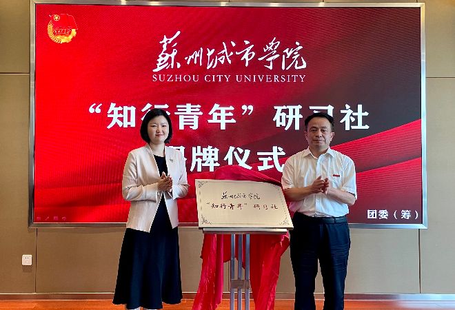 芮国强、蒋妍共同为苏州城市学院“知行青年”研习社揭牌。