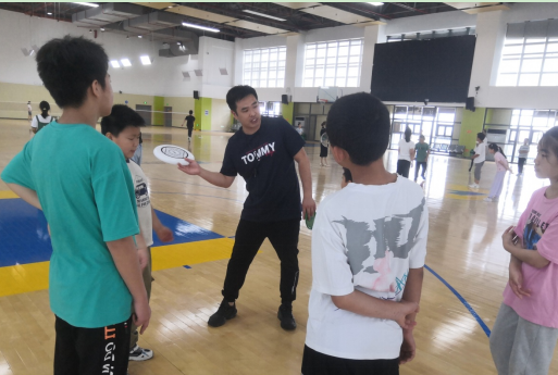 课程由翔越体育的陈成老师授课,首先陈老师带领大家进行了一系列热身运动,随后熟悉了飞盘运动的规则和技巧。随后陈老师将在场小朋友分成五组,进行了飞盘的实操练习,小朋友们也在欢乐的氛围中锻炼了速度、协调性和反应能力。