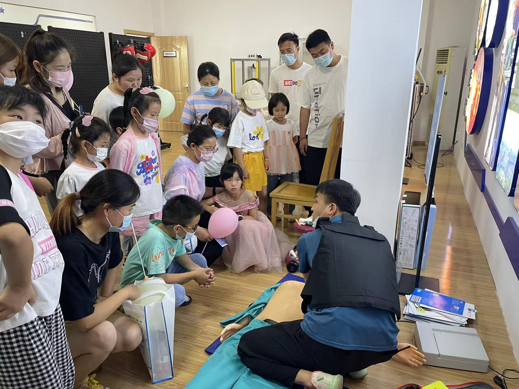 除了授课的方式,本次活动还组织多种场景体验的方式指导青少年们紧急情况下正确救援。消防员带领青少年们参观消防车辆,组织学习穿戴防护装备,讲解突发火灾后的避灾技巧,模拟火灾现场,进入消防模拟逃生舱体验如何快速逃生,通过VR让青少年们按现场指示完成灭火及逃离火场。除此之外,培训人员还现场讲解心肺复苏的技能要领,指导如何实施心肺复苏施救。