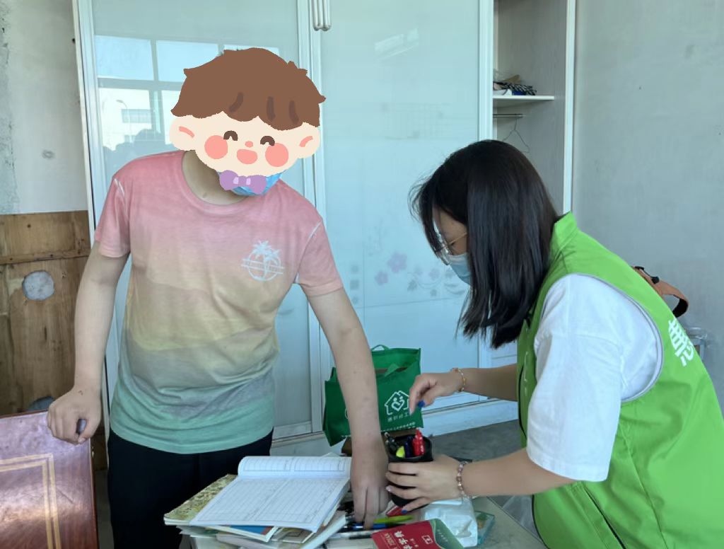 入户前,青年志愿者提前与服务家庭沟通,提前计划、购置学习空间改造物资。在空间改造过程中,志愿者充分尊重青少年的改造意愿,初步与青少年制定了学习空间改造计划。在志愿者的协助下,青少年将书桌进行了收纳整理,让有限空间加以利用。改造完成后,志愿者还与青少年约定了要养成收纳整理的好习惯。在帮助困境青少年改善家庭学习环境的同时,志愿者还通过引导青少年主动向家长讲述自己在学校的学习情况,促进青少年与家长之间的良性沟通,使家人能够更加了解青少年的学习情况,逐步提高对其学习成长的关注与支持。