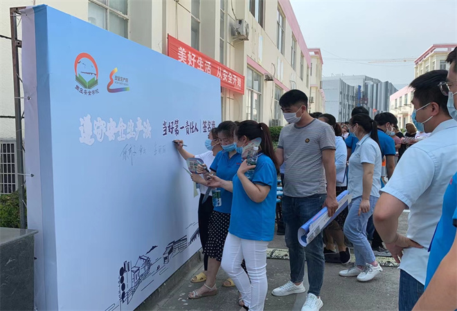 16日上午,在活动现场重点群租厂区杰得恩电子公司内,设置了一幅“遵守安全生产法,当好第一责任人”签名墙,所有参加活动的青年职工、群众都在签名墙上签下对安全生产的承诺。大家签下的不仅是自己的名字,更是对安全责任、安全生产的承诺。青年志愿者还通过设置咨询台,悬挂主题横幅、展示安全生产宣传展牌、现场咨询答疑、发放省级安全生产和安全发展示范城市创建宣传资料等形式,向广大企业青年普及安全生产、应急救援和防灾减灾等知识,大力动员群众关注重视安全生产,遵守安全生产规章制度。同时,发动镇区内企业观看《安全圆桌》直播,使安全生产理念及防范意识进一步入心入脑。