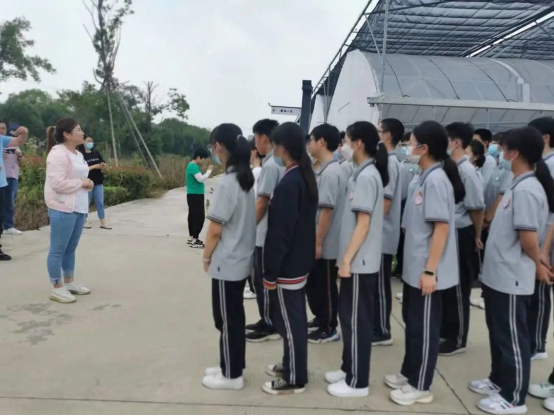在技术员黄云老师和她的丈夫代诗国先生的带领下,同学们兴致勃勃地参观了各个现代化智能大棚。大棚内安装了先进的自动滴灌和喷淋设备,大大提高了水的利用率,也节约了水资源。大棚还可以通过水冷系统降温。所以,尽管是在炎炎夏日,行走在大棚内,师生们却感到凉凉的。在瓜果大棚,冬日里诱人的草莓已经不见踪影,取而代之的是散发阵阵清香的羊角蜜正掩映在绿叶丛中。在蔬菜大棚,橙黄的南瓜、鲜嫩的黄瓜悬挂在空中,和绿叶一起,形成一面面硕大的绿色屏风。在花卉大棚,同学们看到姹紫嫣红的各色花卉竞相开放,有的品种连见都没见过。