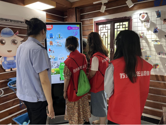 在震泽镇青年之家,垃圾分类专班讲师徐蓄从垃圾分类的情况、垃圾分类的意义、生活垃圾四分类 、垃圾源头减量化四个方面为青年志愿者们授课。在青年志愿者新风尚实践点(垃圾分类宣教基地),青年志愿者们参加了线上垃圾分类挑战赛,徐蓄还为大家介绍了垃圾分类及处理流程。