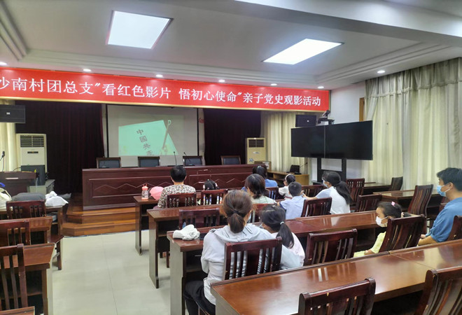 2022年6月29日上午,沙南村团总支联合春来社工开展了“看红色影片悟初心使命”亲子党史观影活动,让辖区青少年儿童了解党、热爱党、心向党,增强民族自豪感和使命感。