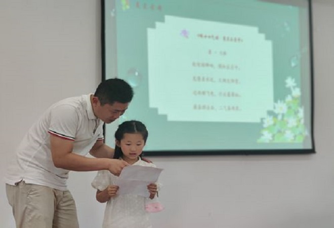 活动开始,工作人员结合地理知识,给孩子们上了一堂生动形象的夏至小课堂,让孩子们了解到“什么是夏至”“夏至吃什么”“夏至人们做什么”等风俗习惯。接着,邀请了六位小朋友,为大家诵读了关于夏至的诗歌,上台的小读者们自信满满,获得大家鼓励的掌声。然后,工作人员和小朋友们分享了关于二十四节气的绘本《画给孩子的二十四节气》,给每一位孩子赠送了书籍,鼓励家长们带领孩子们开展亲子阅读,在生动的画本中和孩子一起共同了解和探讨节气交替变化,感受中华文化及传统习俗。