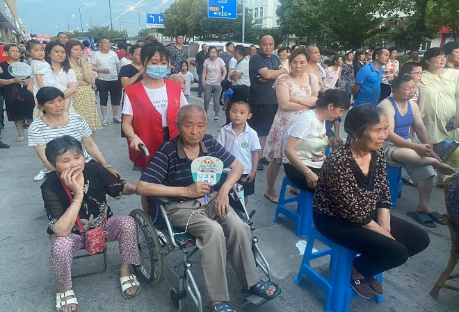 为丰富群众精神文化生活,6月27日19点,常熟市文化馆来到练南村南湖苑二区南门口开展送戏下乡2022“情暖常熟”文化惠民活动,文化馆公益巡演。演出现场练南村组织青年志愿者维护秩序,为残疾老人推轮椅等,让村民有更好的环境欣赏精彩演出。