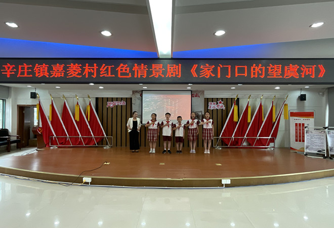 活动中,首先表演的是由嘉菱村团支部组织张桥小学学生编排的红色情景剧《家门口的望虞河》,内容讲述的是1958年开挖望虞河的故事,通过“村书记”的叙述,向年轻一辈们讲述老一辈开挖望虞河的艰辛,“星星满天日升东,望虞河上万灯红,红灯底下比干劲,星月底下比英雄……”一首当年人人口中传唱的歌谣,如今再次在小朋友口中唱起,令人感到无比振奋,一共经历了180多天的辛勤耕耘才有了这样一条利民的河流,值得向老前辈们致以崇高的敬意。接着由“望虞青锋”志愿者给村民群众普及文化知识,内容围绕“强国复兴有我”主题展开,向群众讲述党的发展历史以及如今的成就,通过通俗易懂的话语和事例相结合,让他们更容易理解,也更直观的感受如今安定的生活。
