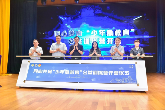 区委统战部副部长、台办主任薛建国,团区委副书记朱媛,盛泽镇党委委员、党政办主任王君,盛泽镇党政办副主任严以待,盛泽镇新联会会长周忠年,吴江区丝路智善社工服务社理事长刘淑娟共同启动同心共育“少年急救官”公益训练营。希望通过开展“少年急救官”活动,推动“人人参与自救互救,共建共享文明社会”的良好社会氛围。同时,希望广大少年儿童掌握自救互救技能,一旦遇到灾害险情,不仅能够懂得自救,也能利用自己所学帮助身边的人,践行“请党放心 强国有我”的铮铮誓言。