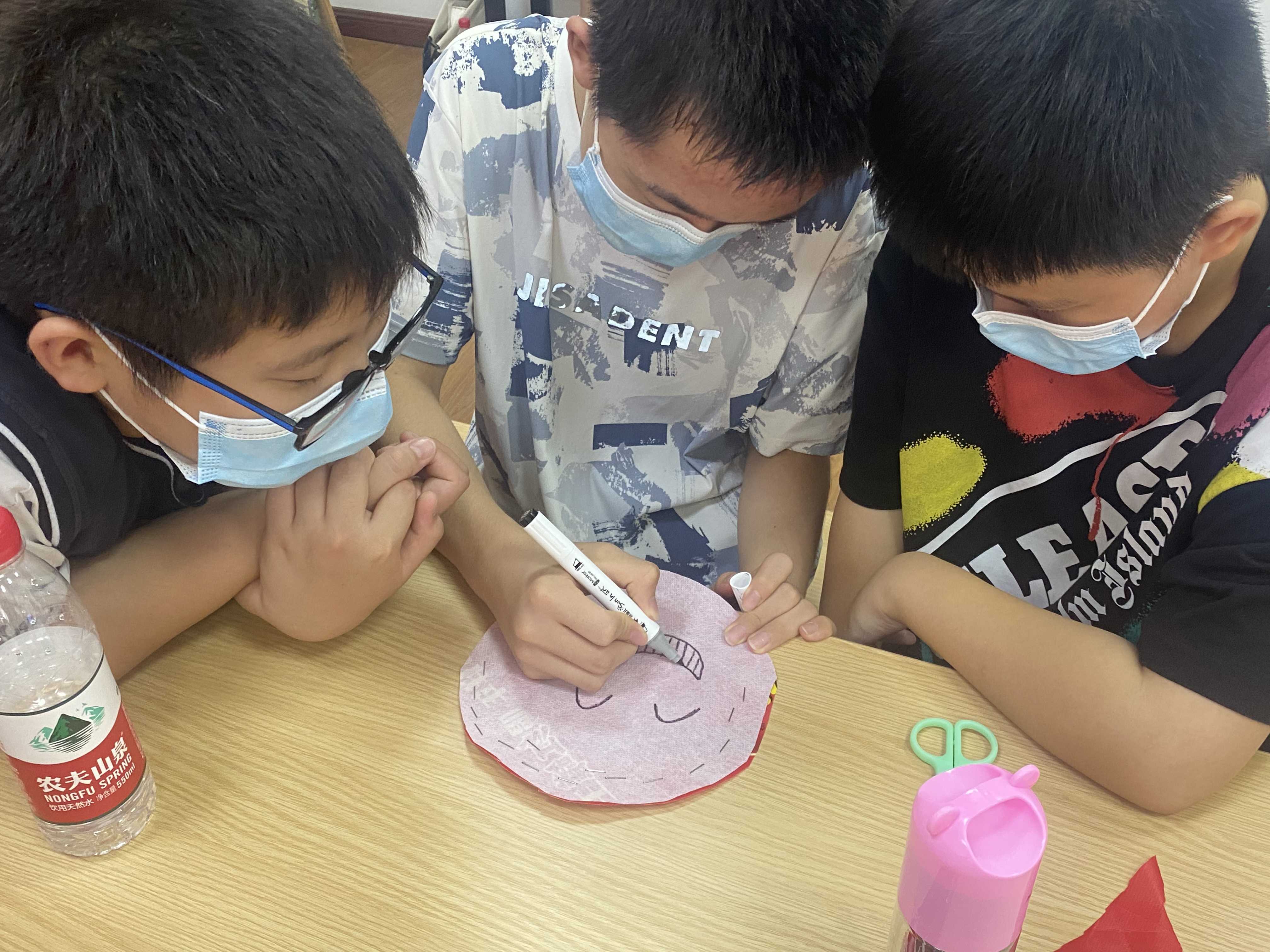 首先,主持人设置了“个性名片”这个环节,让同学们对自己进行客观的评价,接着就开始破冰之旅。在场的所有同学,平均分成了四组,每一组通过自我介绍和相互了解,选出了本组的组长,在组长的带领下,同学们兴致勃勃地给自己的小组设计了别出心裁的队名、响亮的口号、独特的LOGO。同学们团结协作,劲头十足。紧接着小组成员通过多元排队,寻找一个客观、真实的自我。根据自己在多元排队中所处的不同位置,同学们更加明确自己的客观地位,消除对自己的过高或过低评价。活动的最后,还给同学们准备了无纺布、订书机、棉花等材料,让同学们制作“自画像”、小表情。