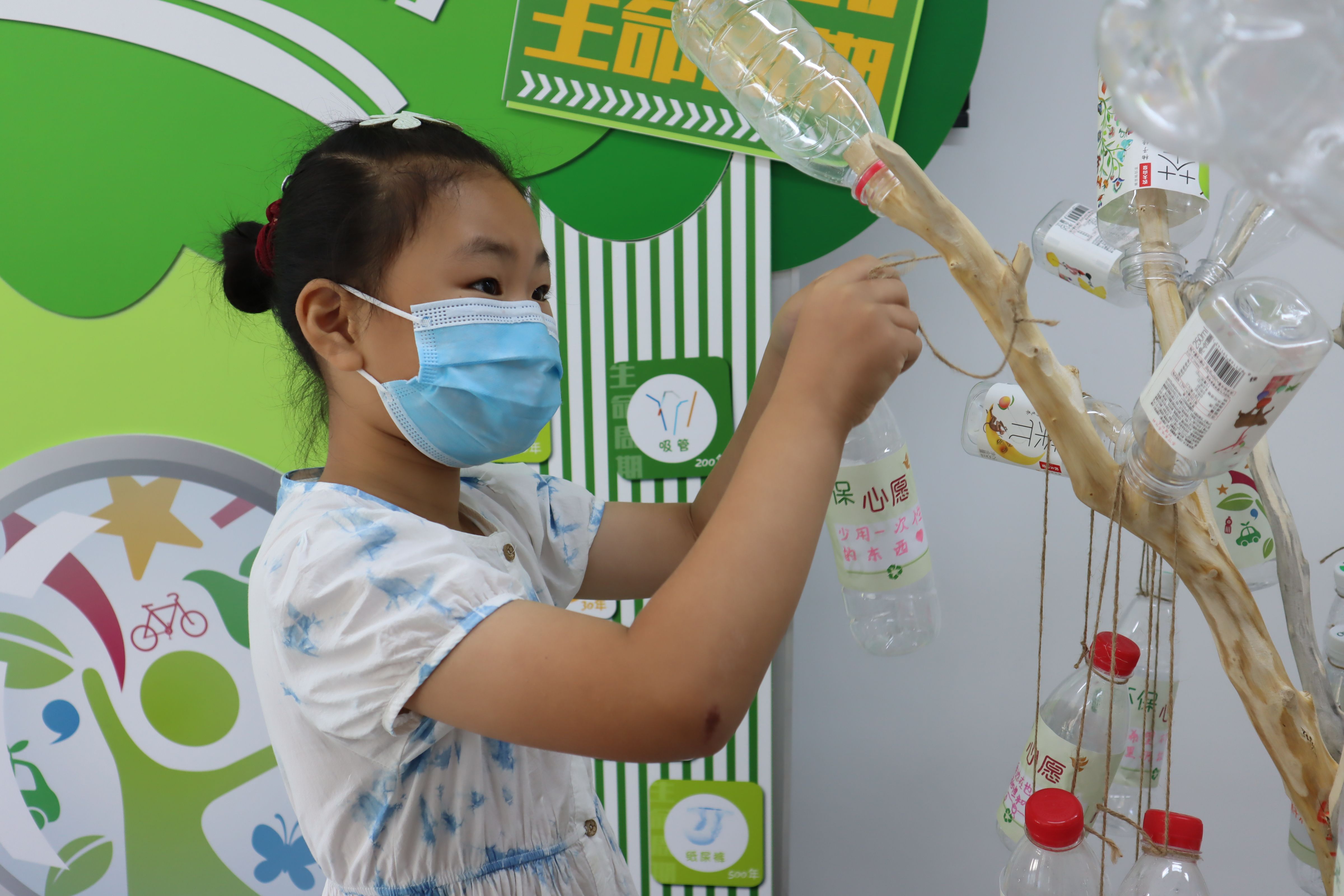 随后,志愿者带领团员们来到减塑打卡点位,为团员们留下环保一刻的照片,然后引导青少年团员们来到绿色心愿树,拿起手中的画笔,在环保心愿贴上留下自己的绿色心愿,并贴在废弃的塑料制品上。之后,团员们把手头的废弃塑料瓶进行制作装饰,很快就制作成环保心愿瓶并挂在大树上。这次打卡制作活动通过实践,倡导青少年团员们将环保落实到日常生活的点点滴滴。