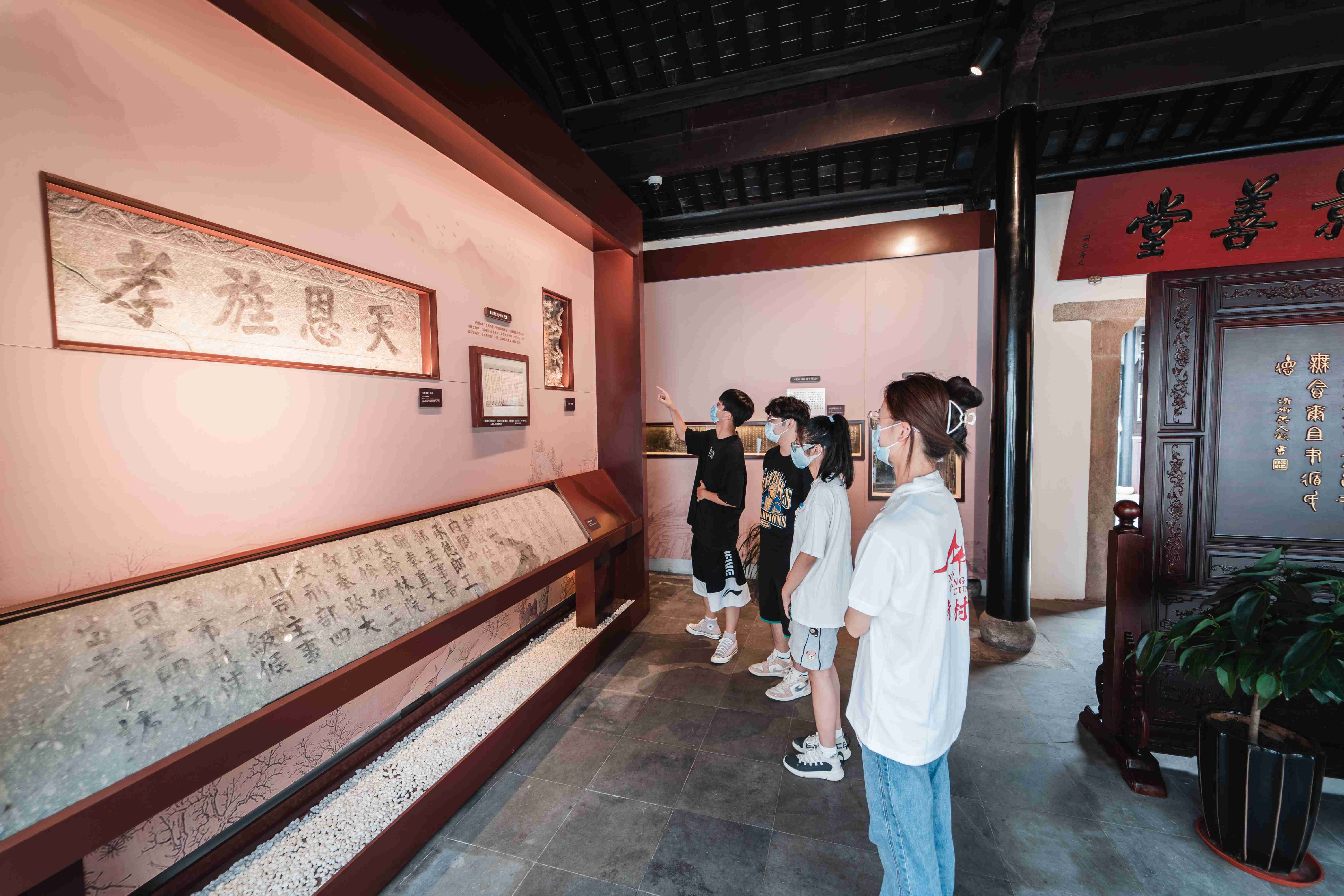 张家港家风教育基地位于凤凰镇恬庄古街,总占地面积约4200平方米。基地以“注重家庭、注重家教、注重家风”为主旨,集家风教育、文旅体验、文史研习、文明实践等功能于一体,主要展示以恬庄杨氏家风为典型的地方优秀家风。在讲解员的生动讲解下,团员青年依次参观了杨氏孝坊、碑苑、榜眼府三处古建筑,从“修身齐家治国平天下”的历史古训中,汲取精神的力量、文化的力量。在参观过程中,大家认真聆听着讲解,在喜欢的展品前驻足细细观看,穿行于具有强烈仪式感的家风楹联通道中,感受着良好的家训家风带来道德的震撼。