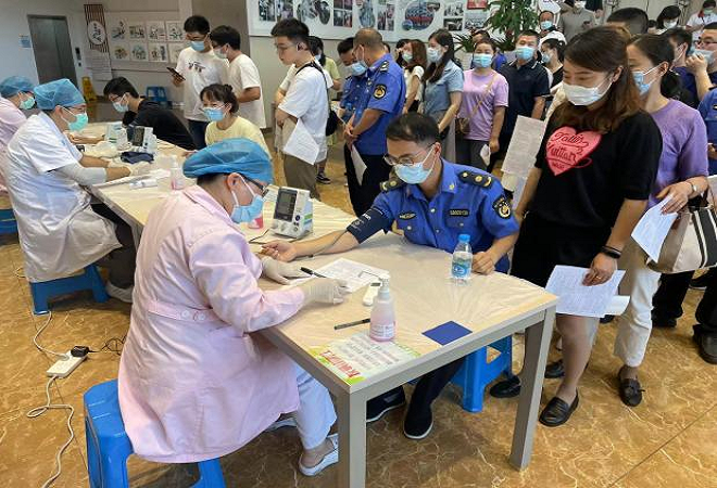 为贯彻落实《中华人民共和国献血法》,保障医疗临床用血的安全和需要,根据街道2022年无偿献血工作通知。7月22日上午,横泾街道综合行政执法局团支部团员青年干部和队员参加无偿献血活动,活动现场,认真按照医务人员的要求填写征询表、测量血压和检测转氨酶、采血等,符合献血要求才能进行献血。经过2个多小时的紧密协作,此次献血活动累计献血共4500余毫升。