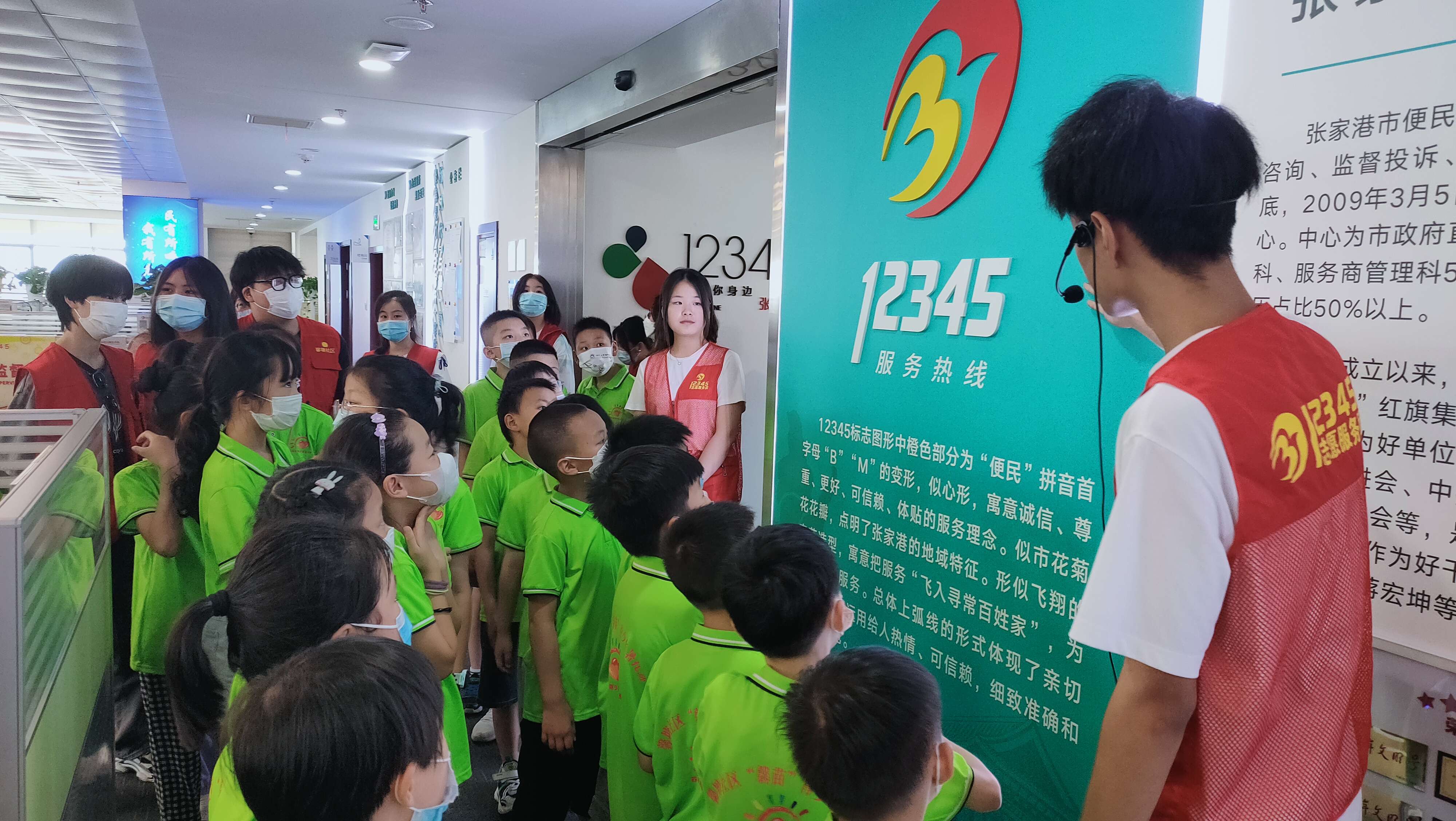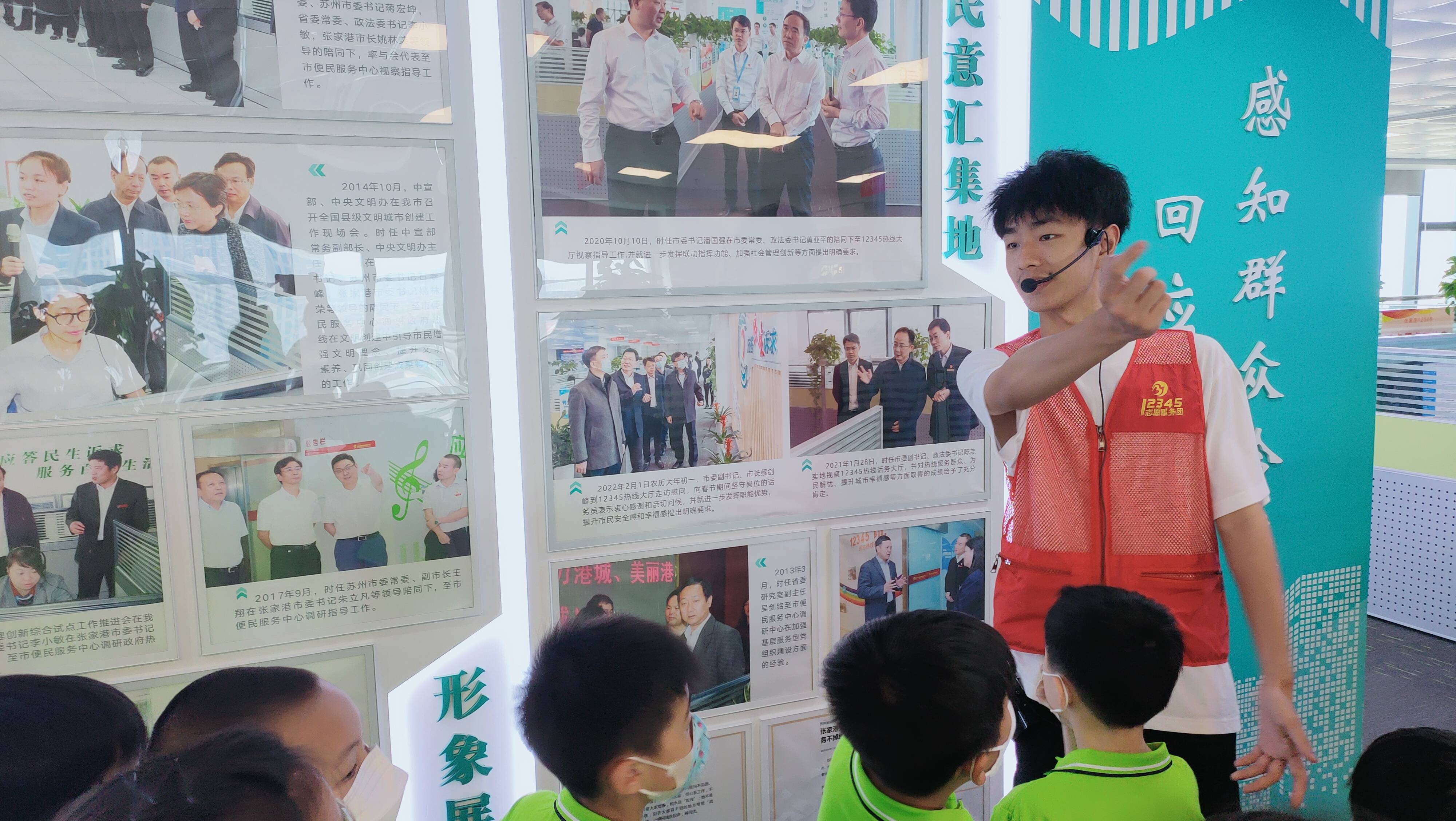紧接着,学员们又来到了张家港市便民服务中心,体验一把“临时工作人员”。跟随着志愿者的脚步,学员们参观了办公场所并向孩子们介绍道张家港市便民服务中心暨12345热线的职能。更了解到便民服务中心全年无休地为港城市民服务,就连年初一也有工作人员值守,只求更好地为群众献上更高质量的便民服务。同时了解到了,12345便民服务中心近年来通过不断精简拨号提示音,从原来的三十多秒缩到现在的十一秒,背后不仅是科技的进步,更是温情的关怀。