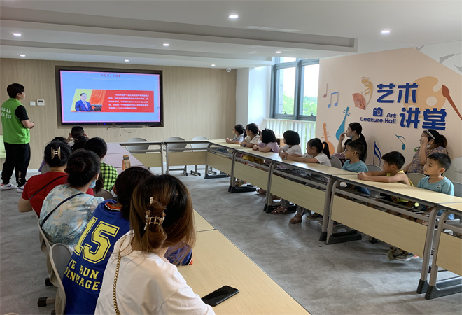 活动中,青年志愿者讲述了中国共产党的奋斗光辉历程,通过有奖问答环节带领孩子们了解党史知识,播放南湖红船视频回顾中国共产党的诞生之路。作为新时代的接班人,孩子们了解了入团入党的章程,欣赏朗读了名人笔下的爱国之说,培养了爱党爱国的情怀。最后,在志愿者的陪伴下,小朋友们进行了纽扣画的创作。孩子们发挥自己的创造力和动手能力,以分组的形式完成,用小小的纽扣串起对党浓浓的热爱和祝福。