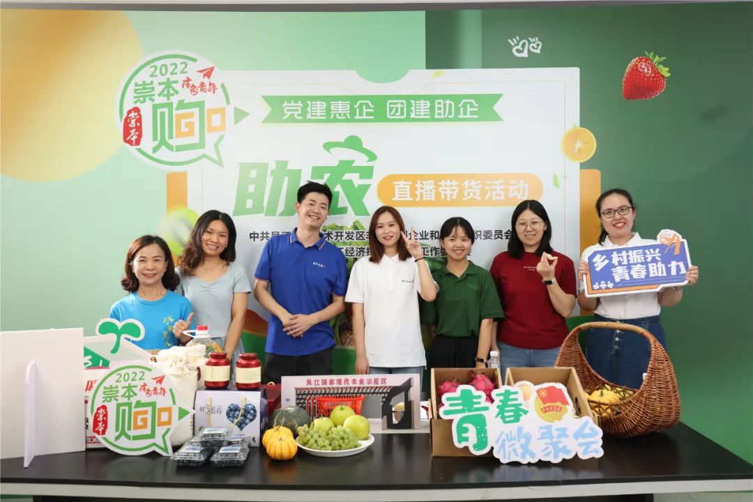 为助力全面推进乡村振兴重点工作,深化“微聚青春”品牌内涵,打造党团共建赋能吴江开发区乡村振兴的“新样板”,为广大青年人才提供助农“微舞台”。7月15日,吴江开发区“两新”党委、团工委携手北联村党委举办2022年度“崇本购”“党建惠企 团建助企”助农直播带货活动,以“互联网+助农直播”打造乡村振兴青春建功新模式。