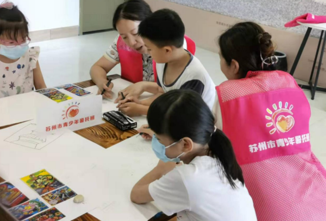 本次活动不仅受到了学生和家长的一致追捧,还得到了甪直党校的大力支持,派遣了专业的美术老师前来教学,为暑托班注入了新的活力。与此同时,澄墩村网格员和志愿者们也积极参与,协助老师维持课堂秩序。