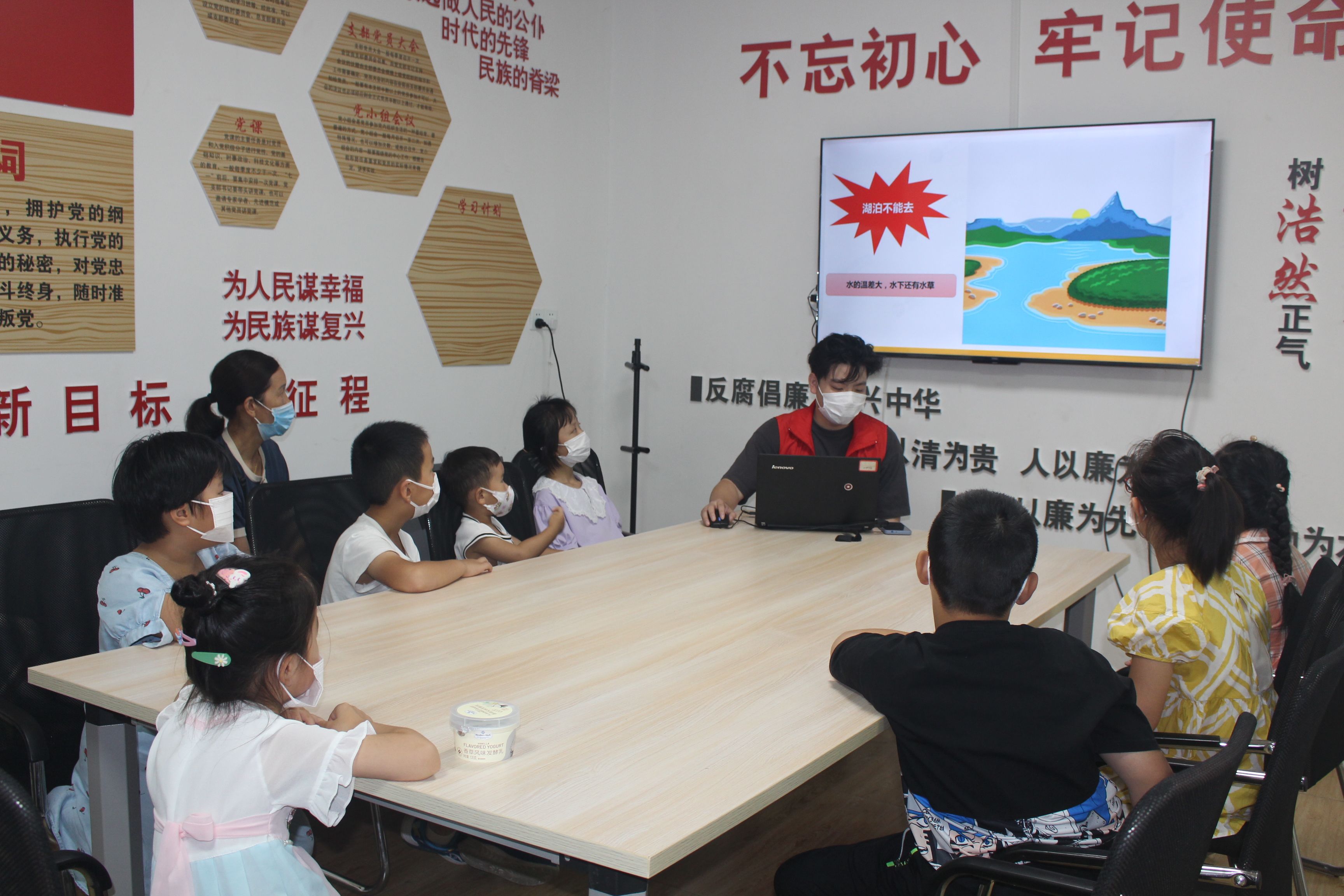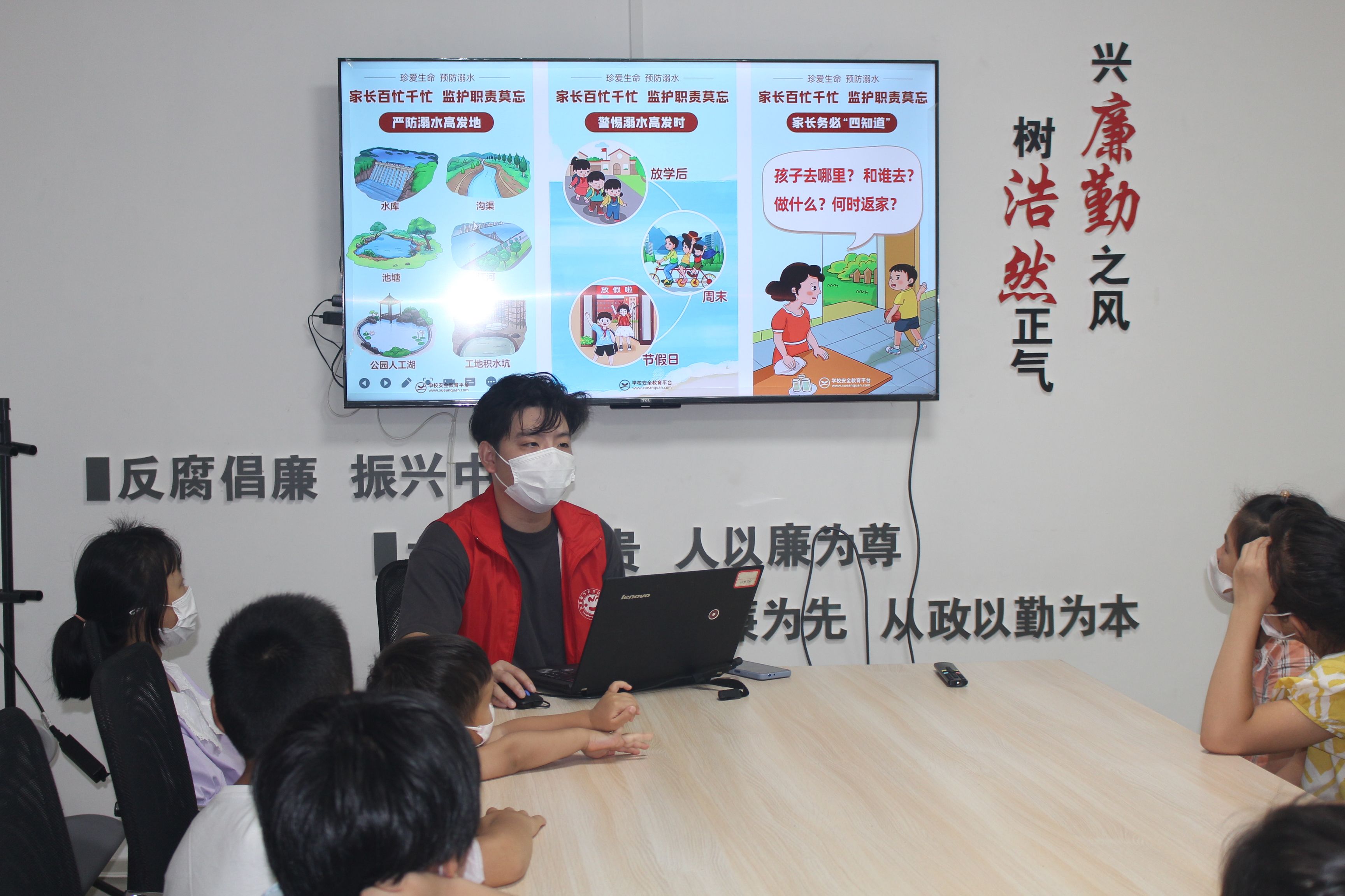 活动开始,团干部组织青少年观看了防溺水警示教育视频,让他们了解到发生在我们身边的真实溺水案例,用鲜活的事例阐述了溺水事故的严重危害以及防溺水安全教育的重要性。接下来,工作人员从“防溺水安全知识”、“监护就是最好的保护”、“溺水急救措施”三方面进行讲述,举例说明身边易发生溺水事故的时间段、地点,未成年人家庭监护的重要性以及遇到溺水事故该采取的急救措施等知识,号召未成年人增强自我保护意识、家庭监护人增强安全监护意识,杜绝溺水事故的发生。