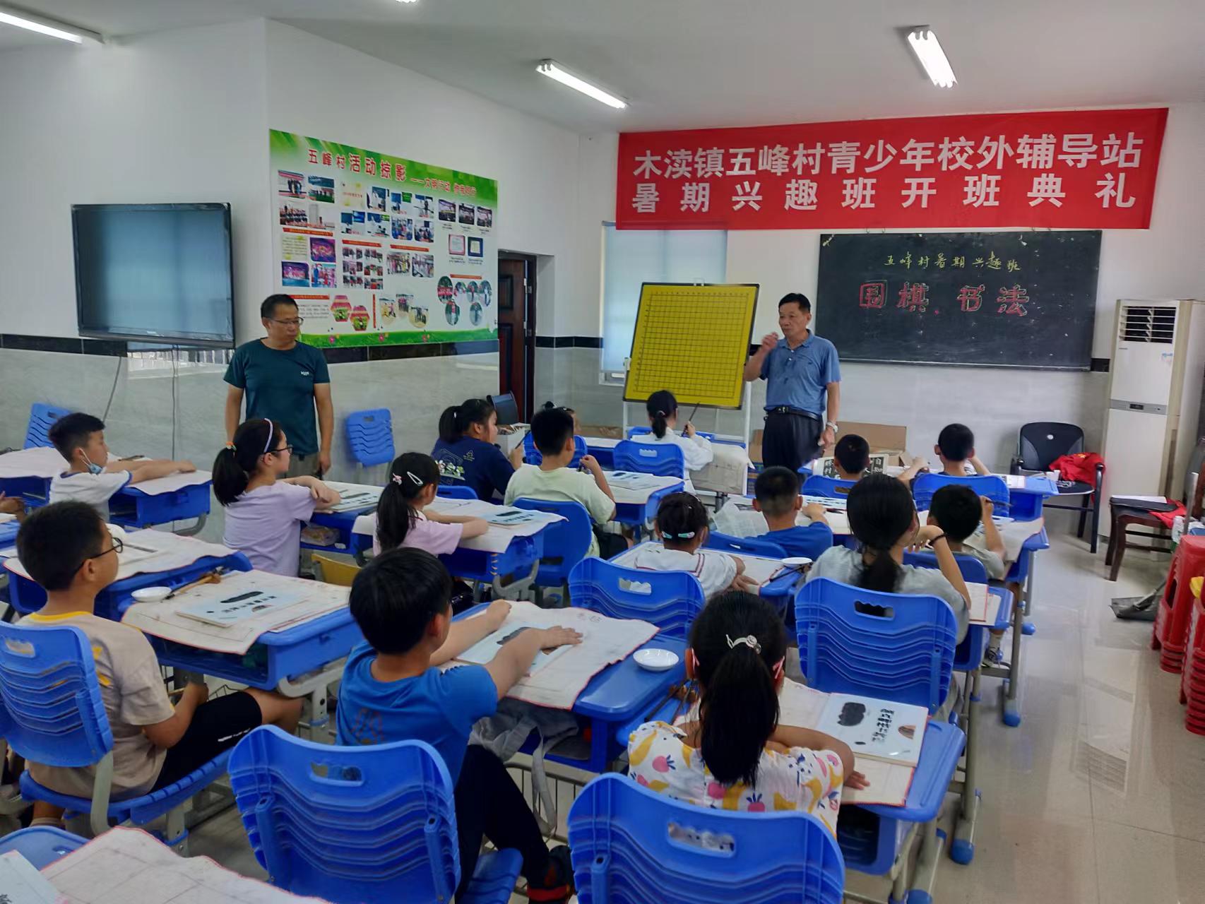 为了丰富孩子们的暑假生活,2022年7月5日,五峰村暑期少儿书法班在五峰村青少年活动室正式开班了,参加辅导的有52名3-6年级的学生。