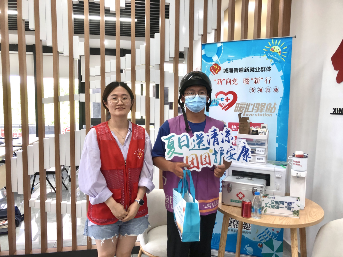 为更好服务快递小哥、外卖小哥、网约车司机等新业态新就业群体,街道在满足设施条件的6个社区“青年之家”设立室内“‘青’凉补给站”。各社区团组织结合自身实际制定实施方案,在站点置专门休息区域提供饮水续水、充电等实用服务,制定安全保障预案储备防暑物资、实用药品等应急物品,以确保疫情防护保障和送清凉服务两不误,切实搭建起实用、有效、便捷的清凉补给和暖心服务平台。同时通过公布站点信息、亮出阵地标识、统一服务口号等方式,扩大“‘青’凉补给站”在新业态新就业群体网络社群中的传播力度,提升阵地知晓度和服务率。