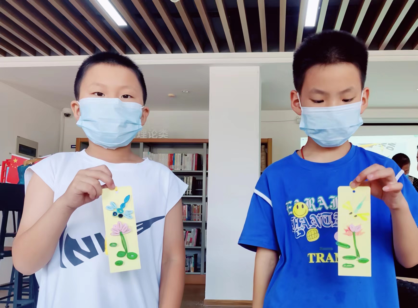 一张小小的书签,蕴含智慧与想象,志愿者准备了多彩马克笔、丝带、硬卡纸等材料,带领大家进行书签DIY制作,让阅读变得更有趣。少年们互相协作,运用衍纸技术,将书签上的复杂图案一一勾勒了出来,独一无二的书签就这样诞生了。