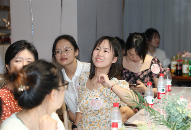 8月3日晚,来自沪光、若宇、益海嘉里等多家非公企业和机关单位的28位青年来到金华村360°青年之家,在七夕前夕体验热闹、浪漫的奇妙之夜。活动现场,男女嘉宾通过自我介绍、党史知识有奖问答及多个趣味互动小游戏,逐渐了解彼此,现场笑声不断、高潮不断,加油声、喝彩声此起彼伏,洋溢着热烈欢快的青春气息。
